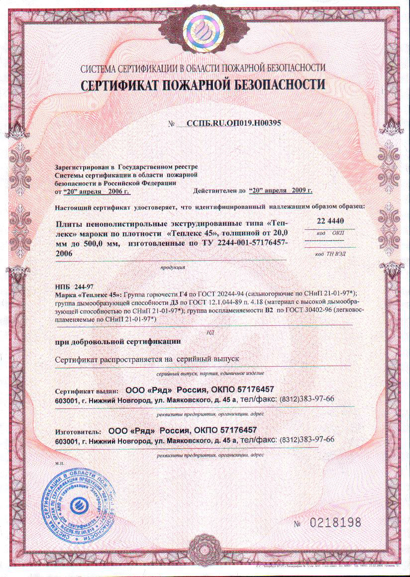 • Огнестойкость: класс Г1